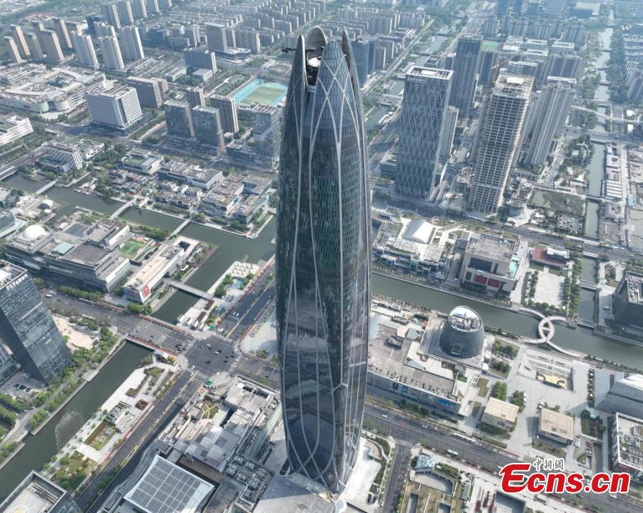 A view of the 409-meter-high Ningbo Center, the tallest building in east China's Zhejiang Province, April 9, 2025. (Photo: China News Service/Wang Gang)
