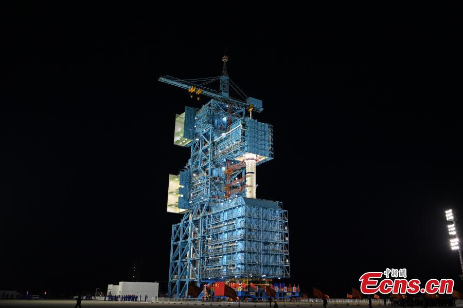 The combination of the Shenzhou-20 crewed spaceship and a Long March-2F carrier rocket istransferred to the launching areaat the Jiuquan Satellite Launch Center in northwestern China, April 16, 2025. (Photo: China News Service/Wang Jiangbo)