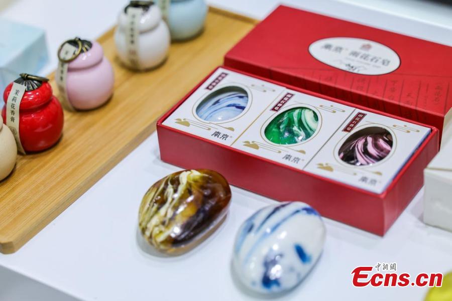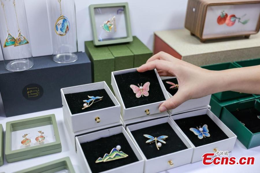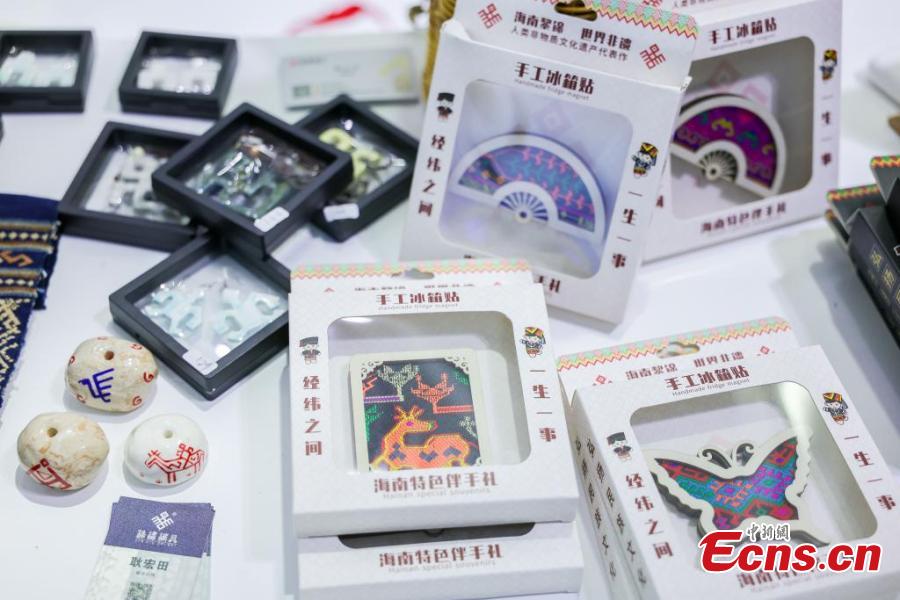 Productsfeaturing China's intangible cultural heritage are displayed at the 5th China International Consumer Products Expo (CICPE) in Haikou, south China's Hainan Province, April 16, 2025. (Photo: China News Service/Luo Yunfei)