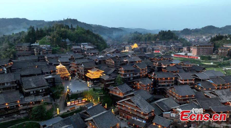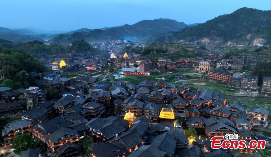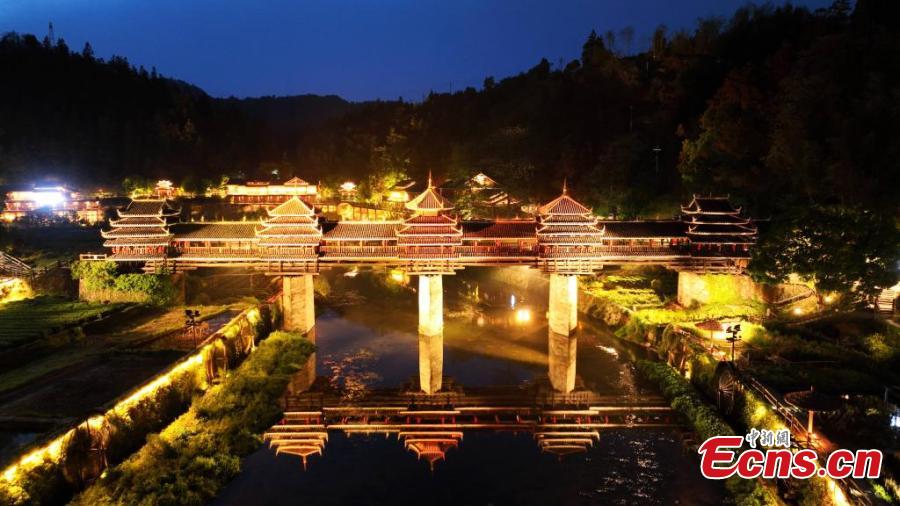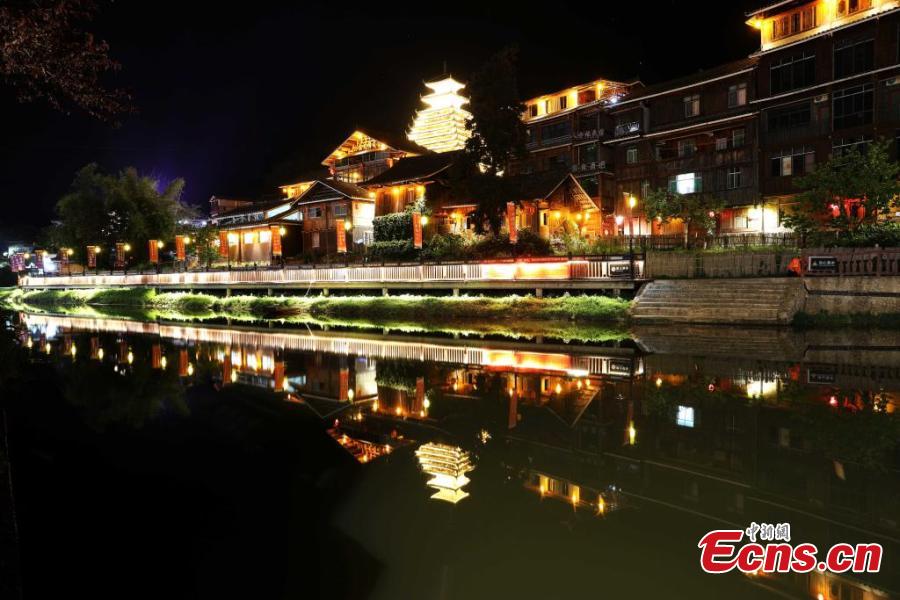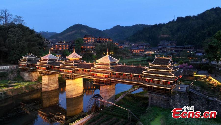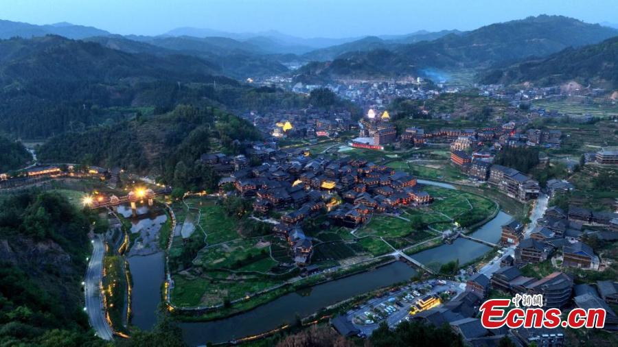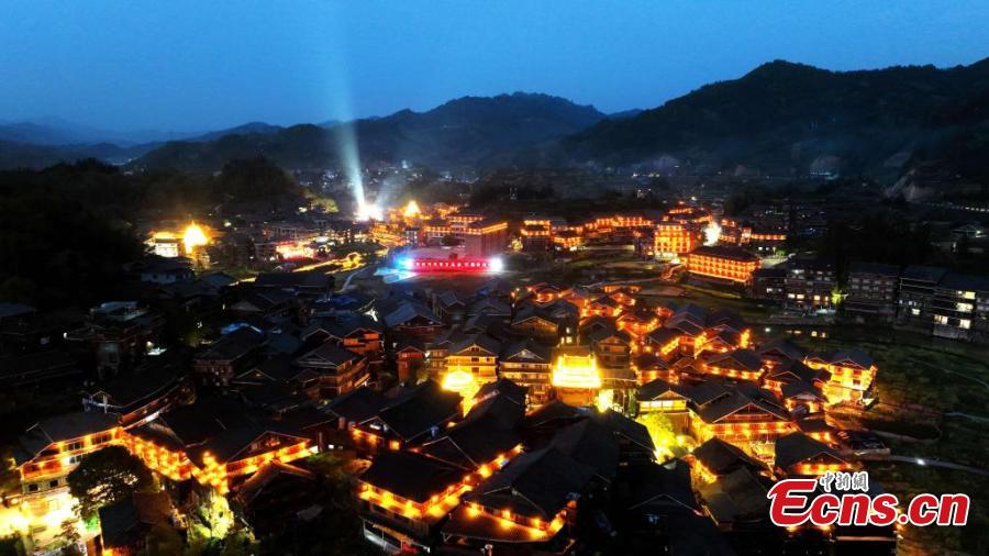 Night scenery of illuminated Chengyang Eight Villages, Sanjiang Dong Autonomous County, south China's Guangxi Zhuang Autonomous Region, April 16, 2025. (Photo provided to China News Service)