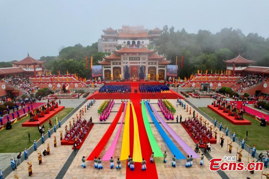 A celebration honoring the 1,065th birthday of the sea goddess Mazu is held at a Mazu temple on Meizhou Island in Putian, east China's Fujian Province,April 20, 2025. (Photo: China News Service/Wang Dongming)
