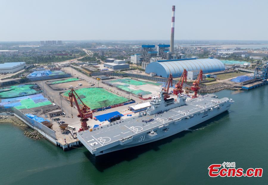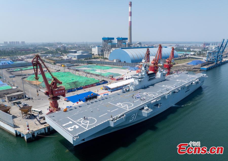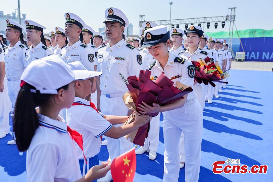 April 23 marks the 76th founding anniversary of the Chinese People's Liberation Army (PLA) Navy. A welcoming ceremony was held in Hainan for the Hainan amphibious assault ship during a series of celebrations.