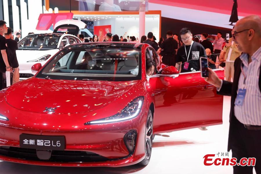 People visit the 21st Shanghai International Automobile Industry Exhibition in Shanghai, April 23, 2025. (Photo: China News Service/Yin Liqin)