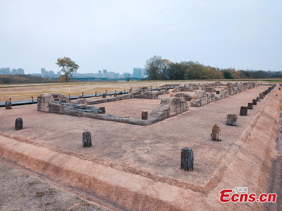 Photo shows the archaeological site of Panlongcheng ruins in the central China's Hubei Province. (Photo provided to China News Service)
