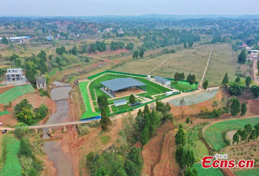 Aerial view of the archaeological site of the Mengxihe Paleolithic site in Ziyang, southwest China's Sichuan Province. (Photo provided to China News Service)