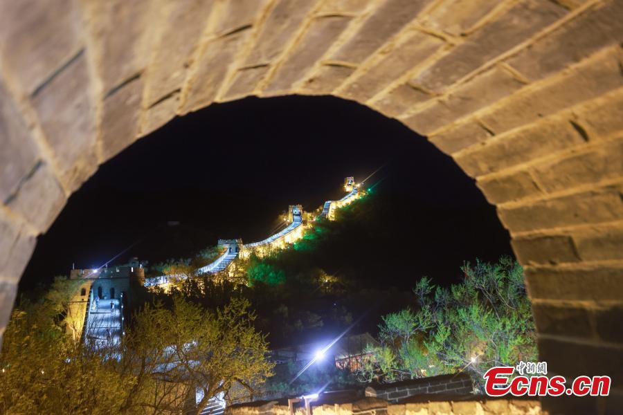 Lights illuminate the Badaling section of the Great Wall in Beijing, April 23, 2025. (Photo: China News Service/Jia Tianyong)