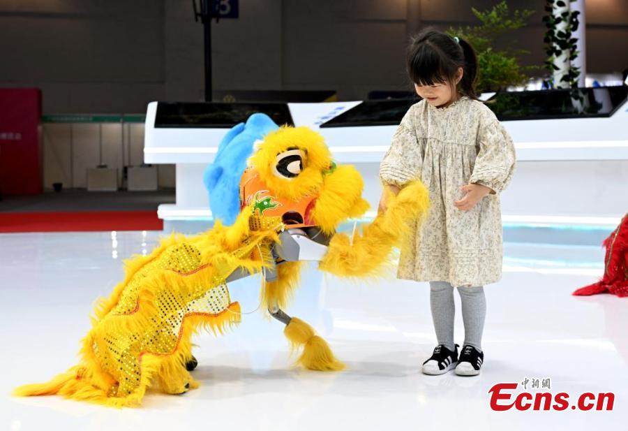A girl interacts with a humanoid robot at the experience area of the 8th Digital China Summit in Fuzhou, east China's Fujian Province, April 28, 2025. (Photo: China News Service/Lv Ming)