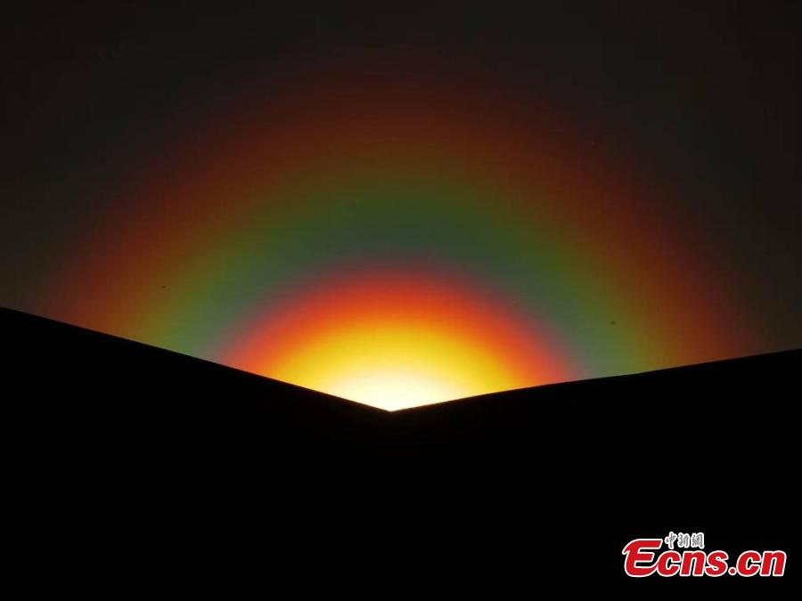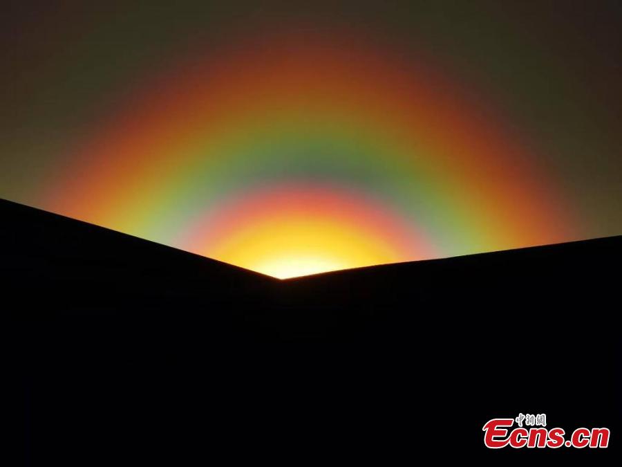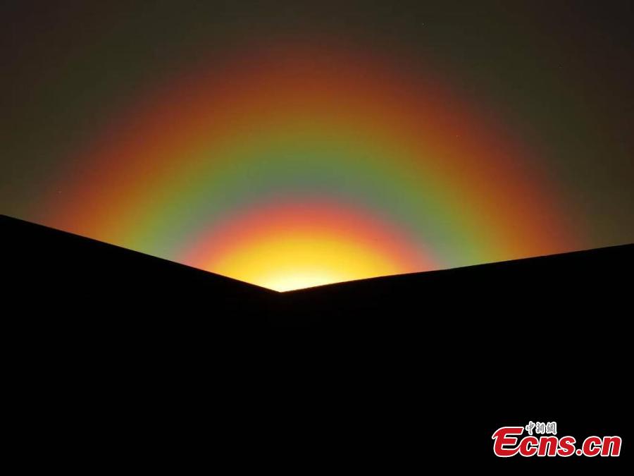 A stunning rainbow is spotted across the sky at sunset in Erenhot, north China's Inner Mongolia Autonomous Region, May 23, 2025. (Photo provided to China News Service)