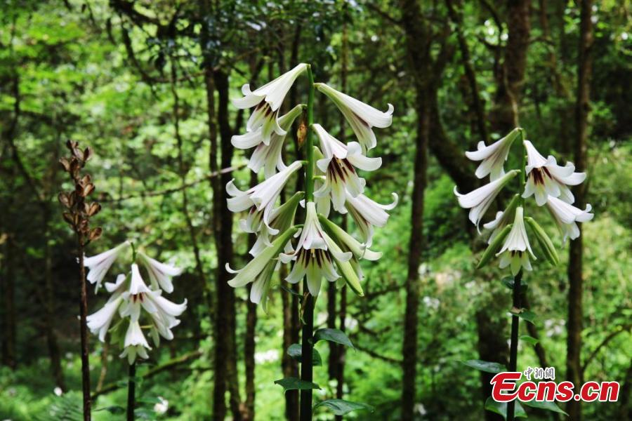 Wild Yunnan lilies bloom in a forest at Longling Xiaoheishan Provincial Nature Reserve, Baoshan City, southwest China's Yunnan Province. (Photo provided to China News Service)