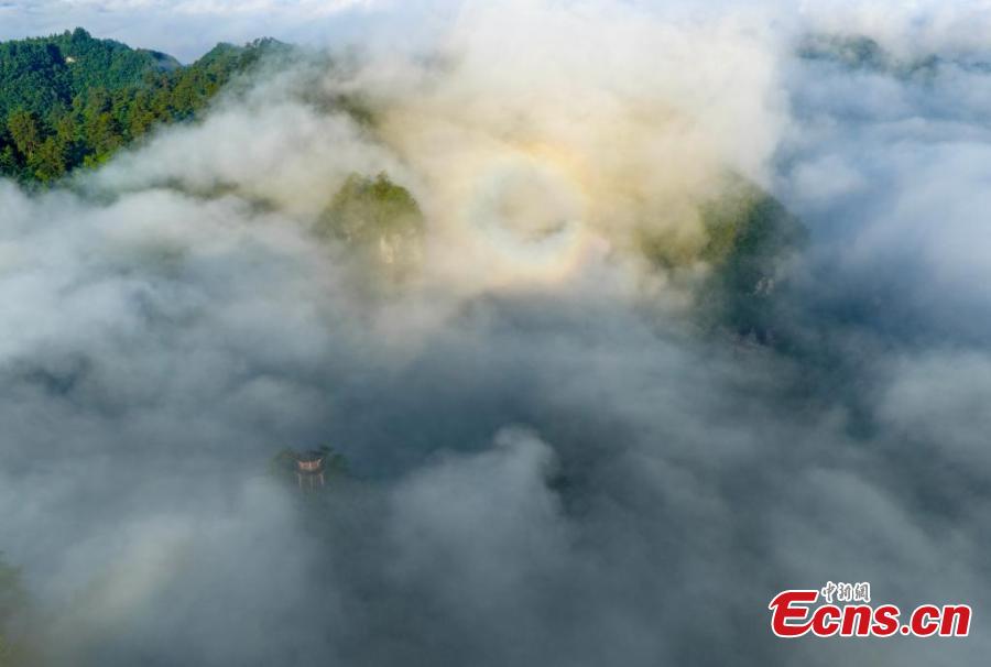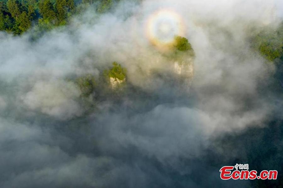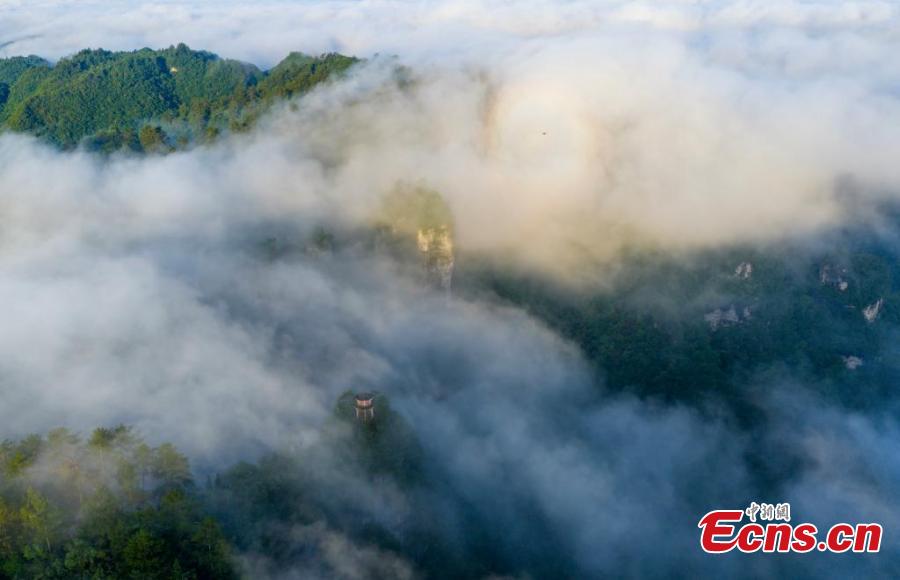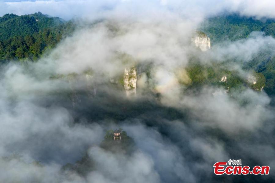 Cloud-shrouded Yuntai Mountain reveals stunning natural scenery in Shibing County, Qiandongnan Miao and Dong Autonomous Prefecture, southwest China's Guizhou Province, May 26, 2025. (Photo provided to China News Service)