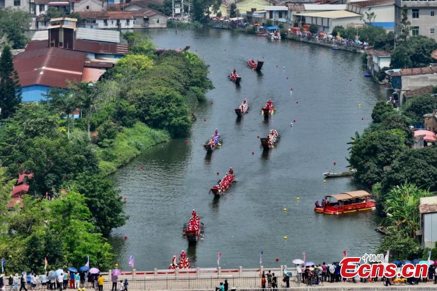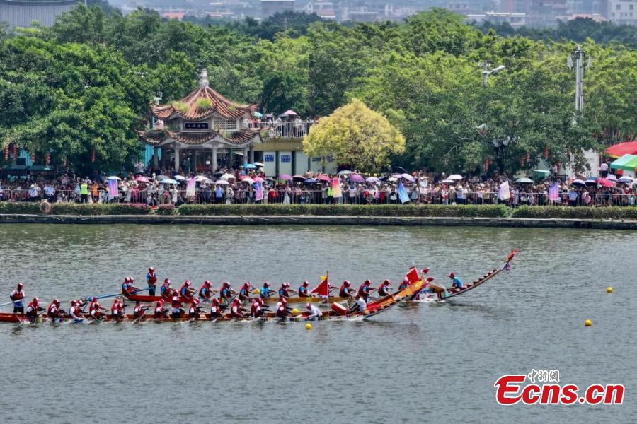 People take part in a dragon boat race on Mulan River in Putian, east China's Fujian Province, June 2, 2025. (Photo: China News Service/Wang Dongming)