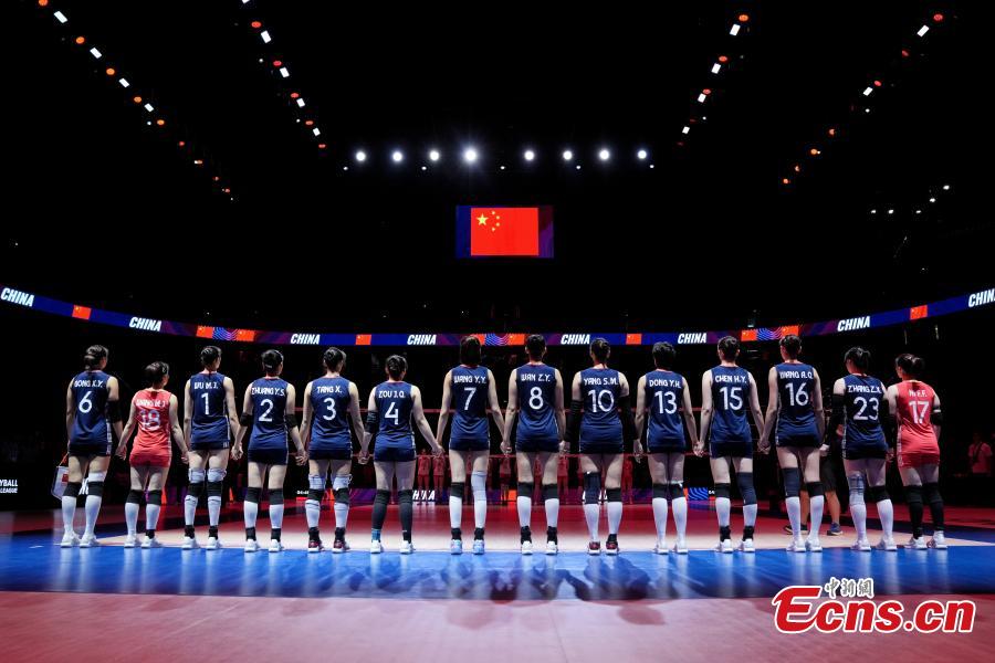 Host China thrilled the home crowd with a dominant straight-set victory over France on Saturday at the FIVB Volleyball Nations League (VNL) in Beijing.