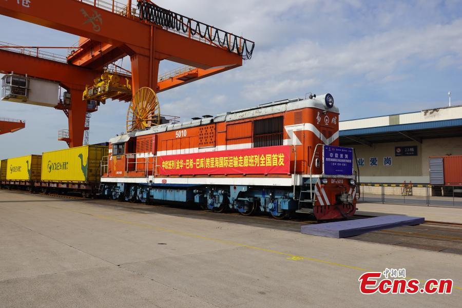 A freight train departs from Jinhua, east China’s Zhejiang Province, for Azerbaijan, June 18, 2025. (Photo provided to China News Service)