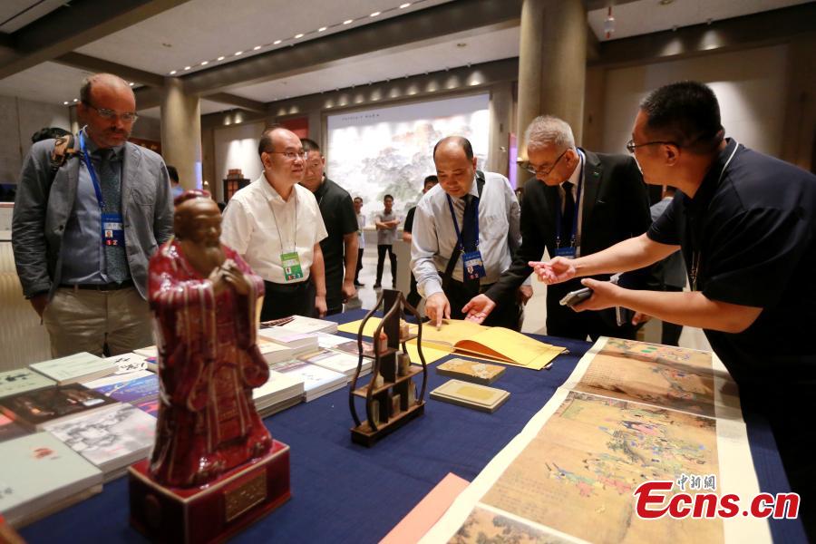 Chinese and foreign guests browse Confucian classics and appreciate cultural and creative products in Qufu City, east China's Shandong Province, July 9, 2025. (Photo: China News Service/Liang Ben)