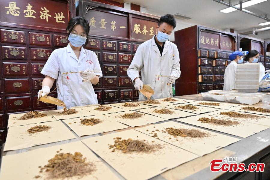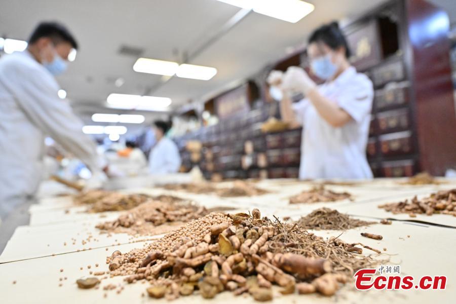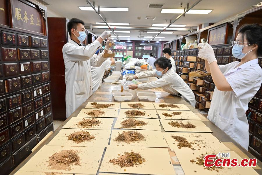 Traditional Chinese medicine (TCM) practitioners prepare herbal medicine for patients in a TCM institution in Shangqiu City, central China’s Henan, July 20, 2025. (Photo: China News Service/Li Heng)