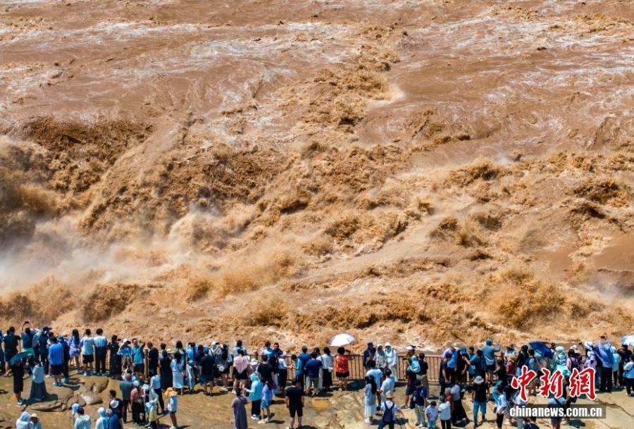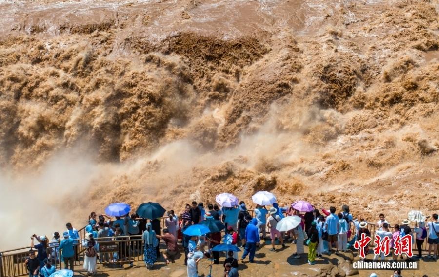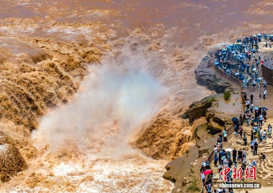 Visitors take in the spectacular views at Hukou Waterfall on the Yellow River in Jixian County, Linfen City, north China's Shanxi Province, Aug. 2, 2025. (Photo/IC Photo)