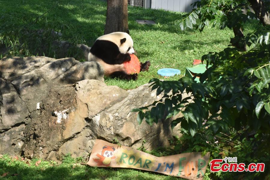 Giant panda Bao Li celebrated its 4th birthday at the zoo on Monday. This marks its first birthday in the U.S. The male panda was treated with a custom fruit-based ice cake made by the zoo’s commissary team. It arrived in the U.S. with the female panda Qing Bao on Oct. 15, 2024.