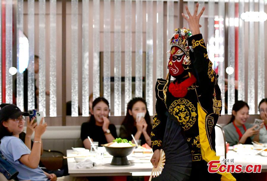 Photo shows a face changing performance at a restaurant in Lhasa, Xizang Autonomous Region, Aug. 4, 2025. (Photo: China News Service/Li Lin)