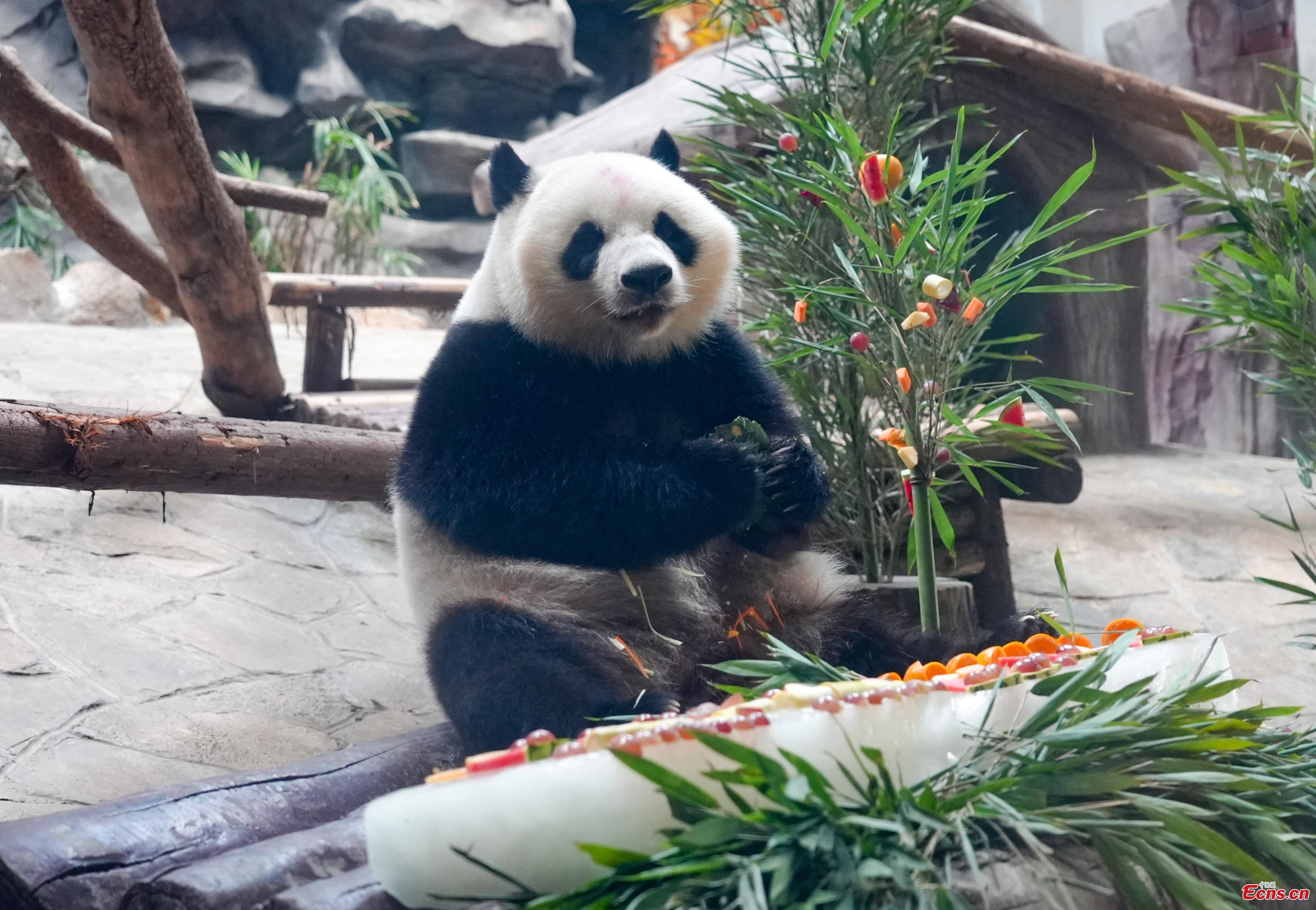 Giant panda Qing Hua and Qing Lu celebrated their 4th birthday at LocalJoy Theme Park in Yongchuan District, southwest China’s Chongqing, on Wednesday. The park's caretakers prepared a frozen fruit and veggie platter using ice, bamboo shoots, watermelon, apples, and carrots for them.