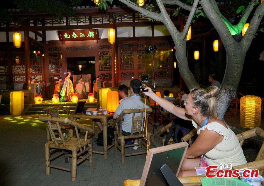 International athletes, coaches, and referees watch Chinese operas at Wangjianglou Park in Chengdu, southwest China’s Sichuan Province, Aug. 6, 2025. (Photo: China News Service/An Yuan)