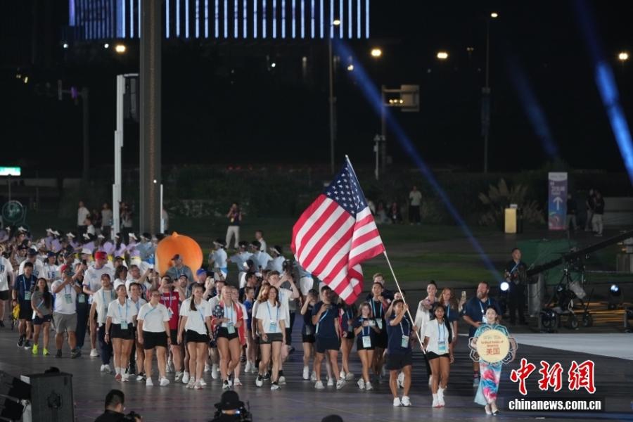 Members of the delegation of the United States parade during the opening ceremony of the World Games 2025 in Chengdu, southwest China's Sichuan Province, on Aug. 7, 2025. (Photo: China News Service/Zhang Lang)