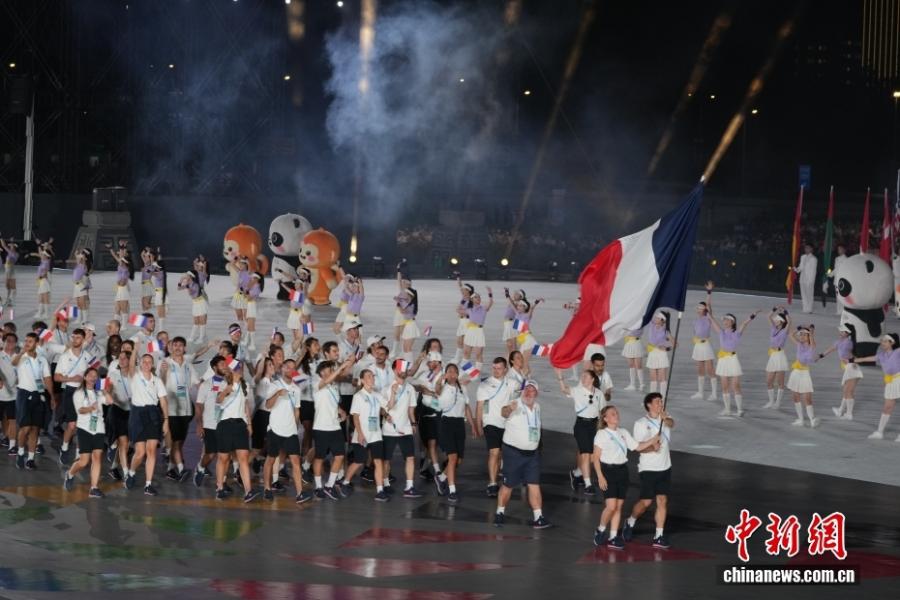 Members of the delegation of France parade during the opening ceremony of the World Games 2025 in Chengdu, southwest China's Sichuan Province, on Aug. 7, 2025. (Photo: China News Service/Zhang Lang)