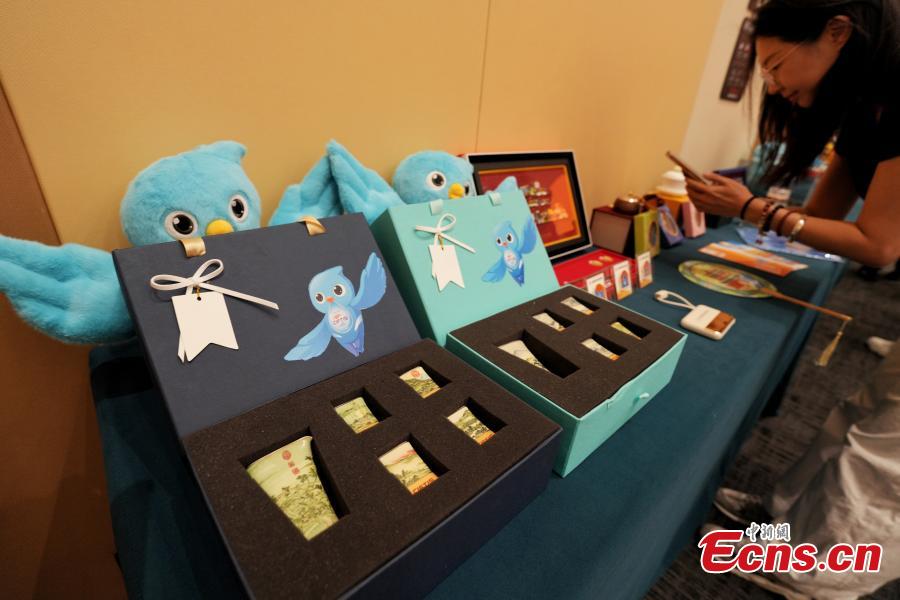 Cultural and creative products designed for the 2025 China International Fair for Trade in Services (CIFTIS) are unveiled at a press briefing in Beijing, Aug. 11, 2025. (Photo: China News Service/Shan Lu)