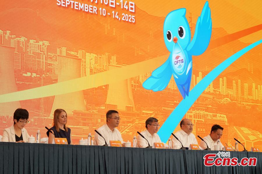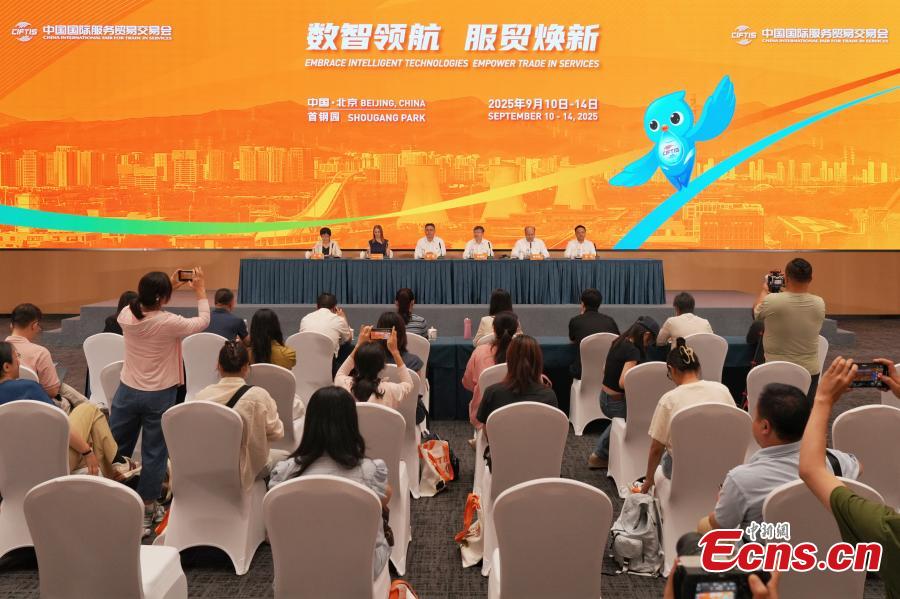 Organizers introduce the preparations for the 2025 China International Fair for Trade in Services (CIFTIS) in Beijing, Aug. 11, 2025. (Photo: China News Service/Shan Lu)
