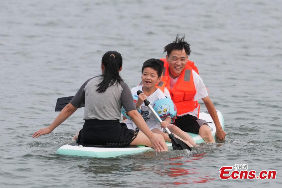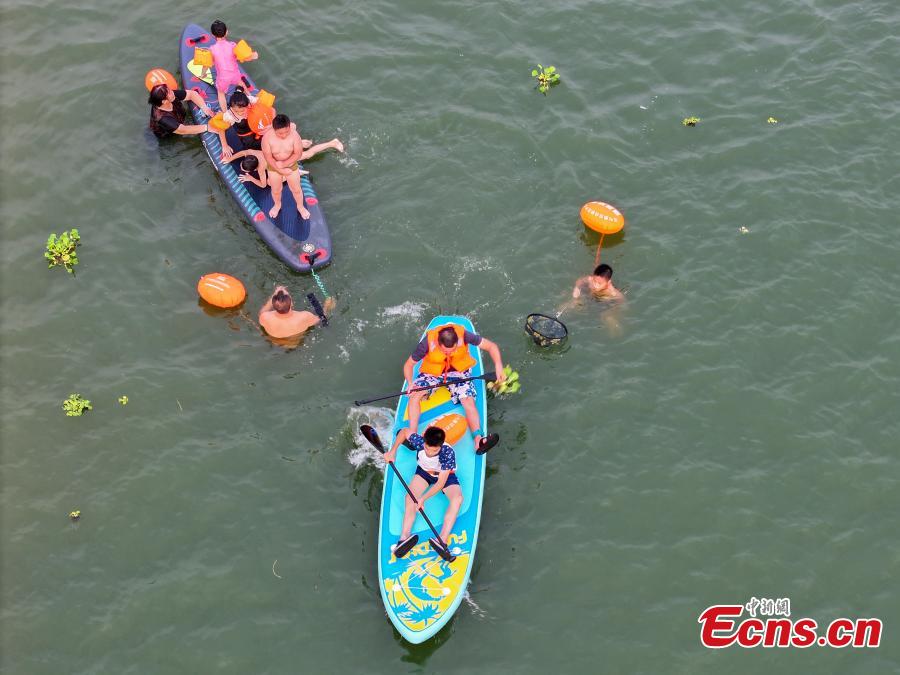 Citizens came to the Changsha section of the Liuyang River to paddleboard for summer heat relief on Monday. Stand-up paddleboarding has been deeply loved by the public in recent years due to its diverse ways of playing and low participation threshold, becoming one of the fastest-growing water entertainment sports.