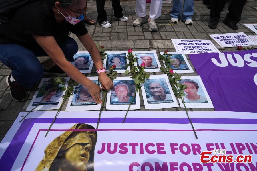 The demonstrators, including members of the Filipino comfort women advocacy groups Lila Pilipina and Flowers for Lolas, as well as victims’ families, called on the Japanese government to issue a formal apology and provide compensation. (Photo: China News Service/Zhang Xinglong)