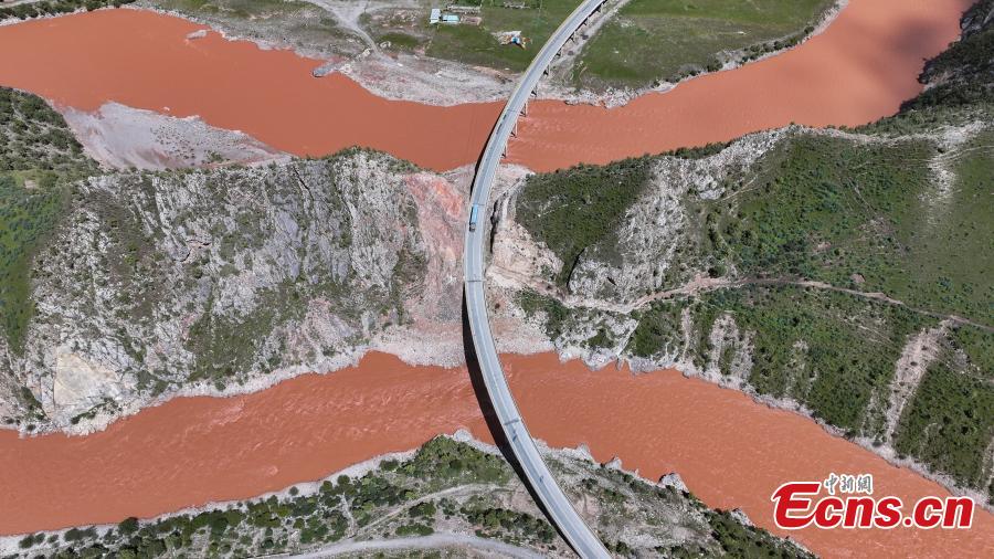 Aerial photo taken on Aug. 21, 2025 shows the magnificent view of the first bend of Lancang River in Yushu Tibetan Autonomous Prefecture, northwest China’s Qinghai Province, Aug. 21, 2025. (Photo: China News Service/Ma Mingyan)