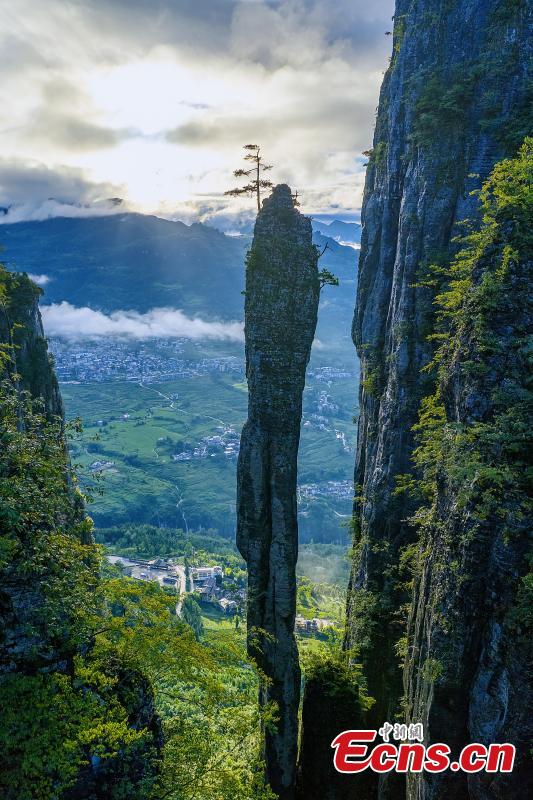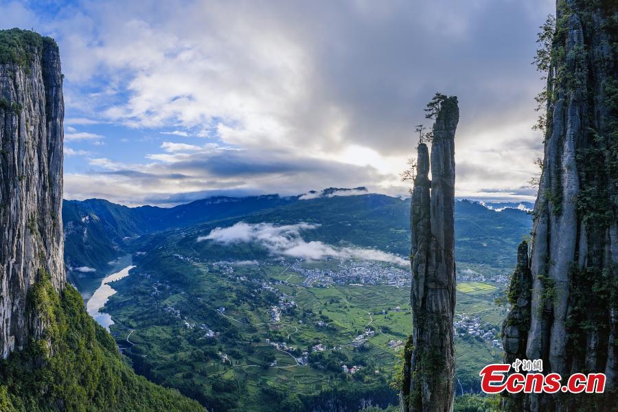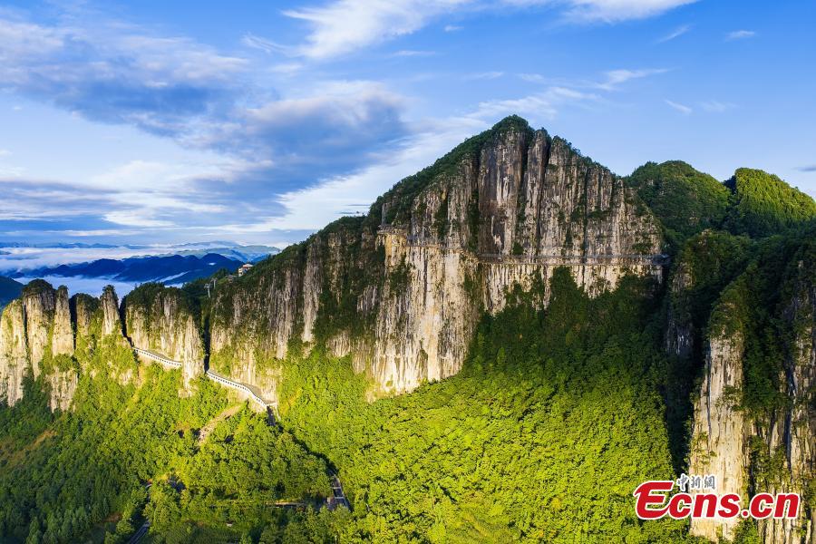 Photo shows the majestic cliffs of the Enshi Grand Canyon in Enshi Tujia and Miao Autonomous Prefecture, central China's Hubei Province. (Photo provided to China News Service)