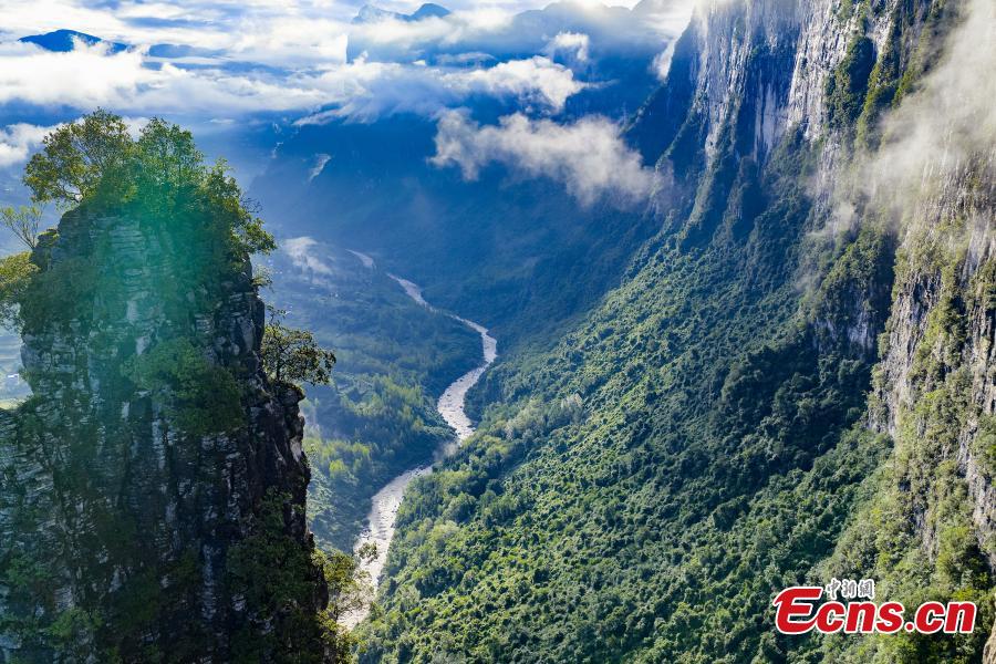 Photo shows the vast, continuous cliffs of the Enshi Grand Canyon in Enshi Tujia and Miao Autonomous Prefecture, central China's Hubei Province. (Photo provided to China News Service)