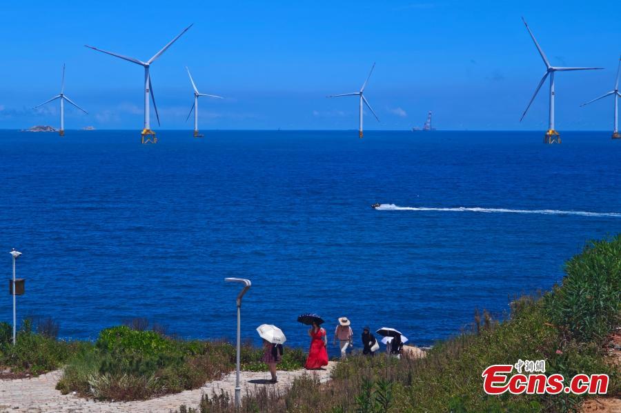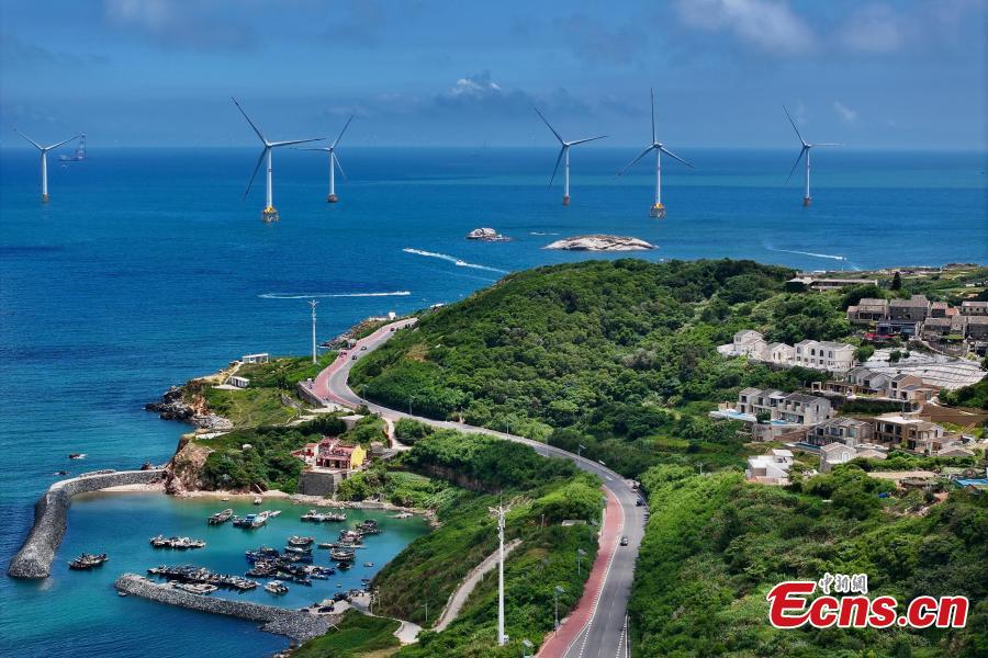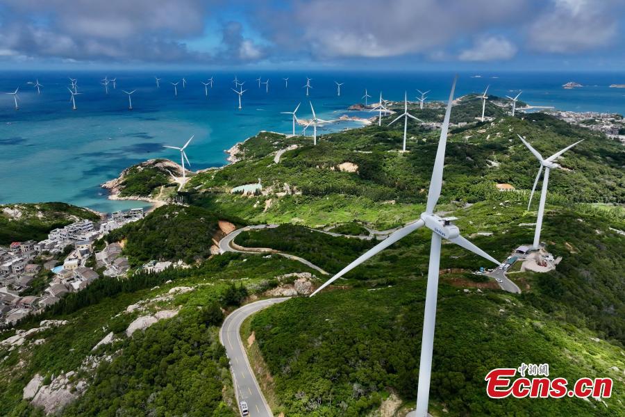 Aerial photo taken on Aug. 25, 2025 shows the wind farm on Pingtan Island in southeast China’s Fujian Province. (Photo: China News Service/Wang Dongming)