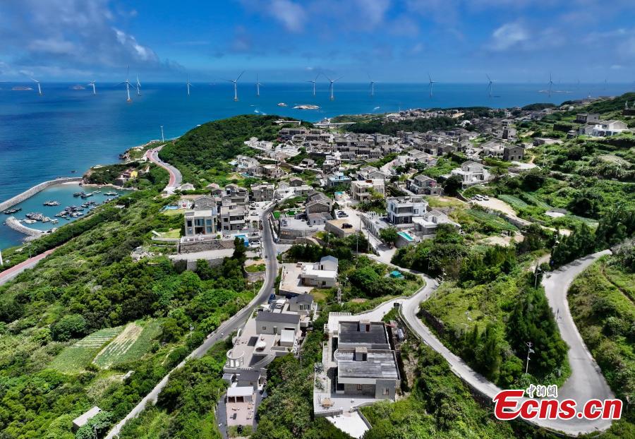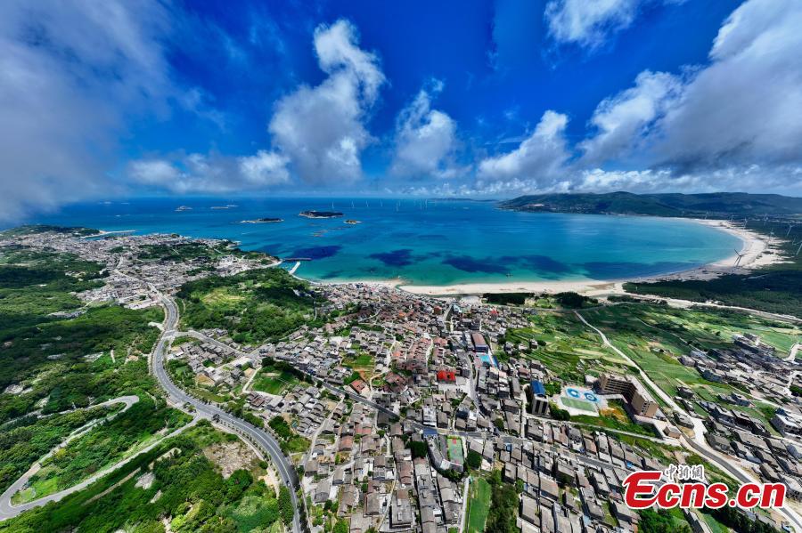 Aerial photo taken on Aug. 25, 2025 shows the houses along the coastal line of the Pingtan Island in southeast China’s Fujian Province. (Photo: China News Service/Wang Dongming)
