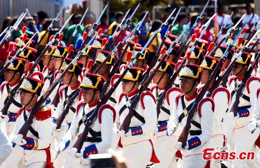 Ceremonial soldiers take part in a parade to celebrate the 203rd anniversary of Independence Day in Brasilia, Brazil, Sept. 7, 2025, local time. (Photo: China News Service/Lin Chunyin)