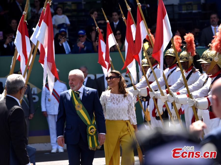 Brazilian President Luiz Inacio Lula da Silva and his wife Rosangela Lula da Silva attend a military review during the celebration of the 203rd anniversary of Independence Day in Brasilia, Brazil, Sept. 7, 2025, local time. (Photo: China News Service/Lin Chunyin)