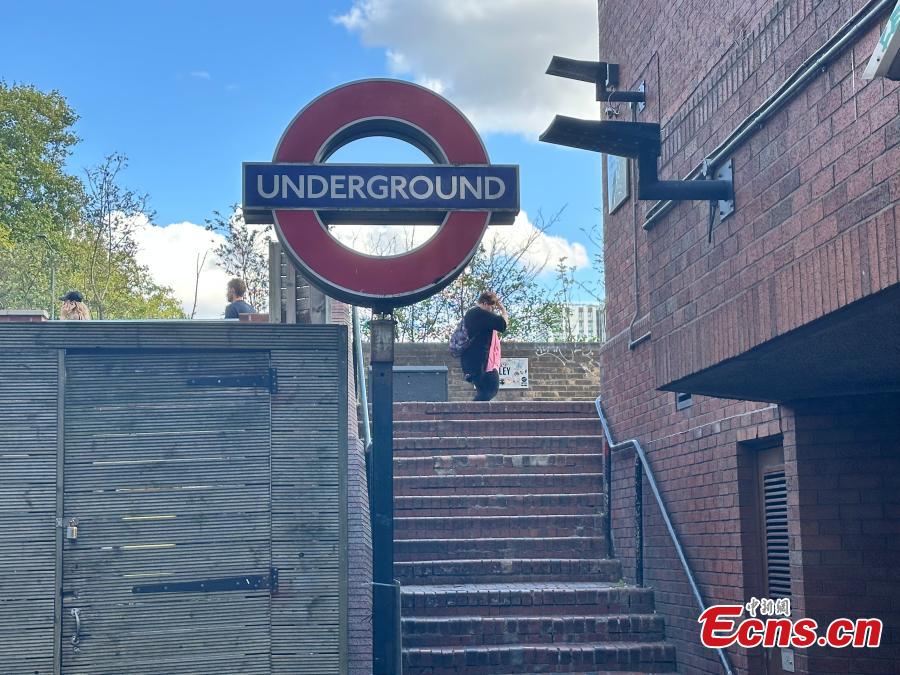 A view of a London underground station entrance during the strike, Sept. 8, 2025.(Photo: China News Service/ Ouyang Kaiyu)