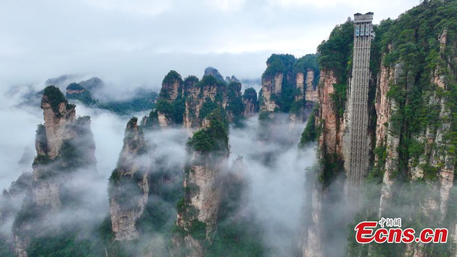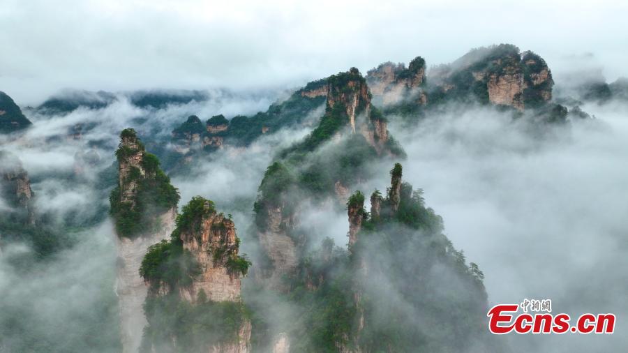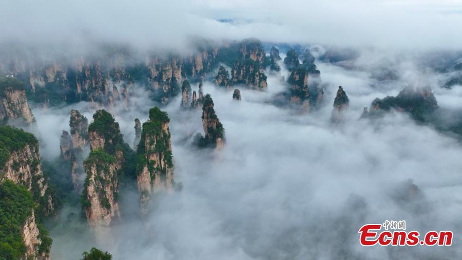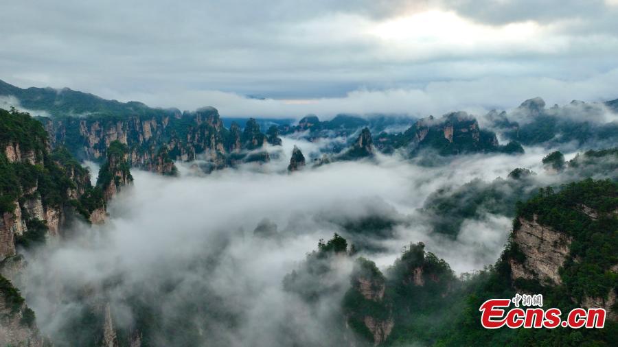 Photo taken on Sept. 15, 2025 shows the sea of clouds at the Wulingyuan Scenic Area in Zhangjiajie, central China’s Hunan Province. (Photo: China News Service/Han Suyuan)