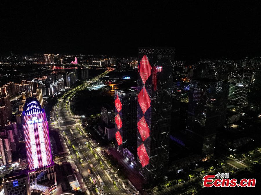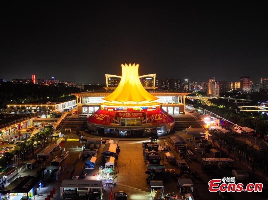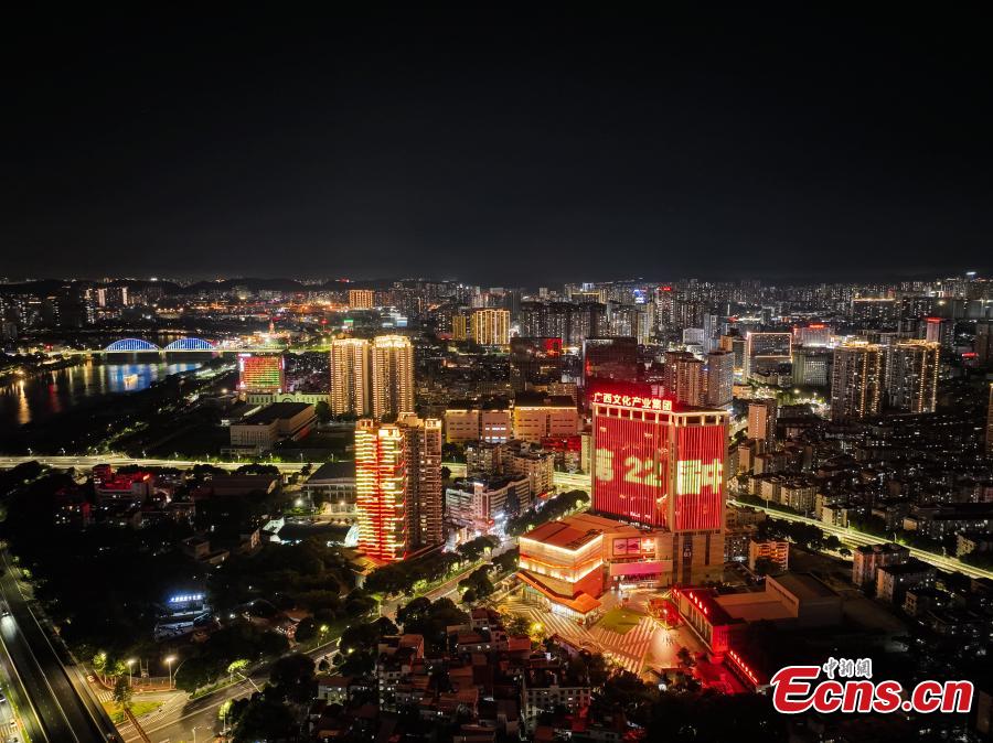 The 22nd China-ASEAN Expo and the 22nd China-ASEAN Business and Investment Summit are is scheduled to be held from Sept. 17 to 21 in Nanning, Guangxi Zhuang autonomous region. Landmark buildings in Nanning lit up to welcome the upcoming events.