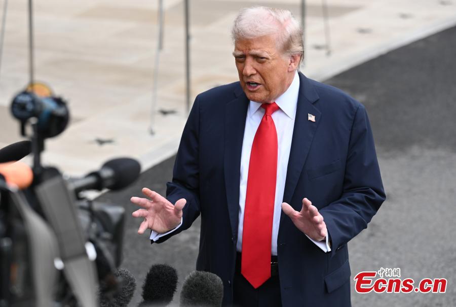 U.S. President Donald Trump speaks to reporters before departing for a state visit to the UK, in Washington, D.C., the United States, on Sept. 16, 2025, local time. (Photo: China News Service/Chen Mengtong)