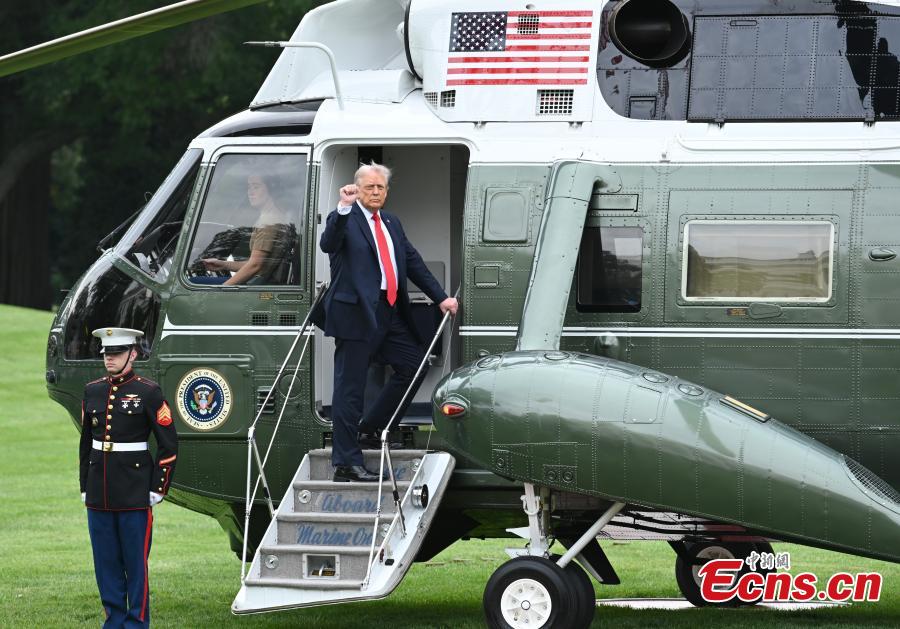 U.S. President Donald Trump boards Marine One at the White House upon departure for a state visit to the UK, Sept. 16, 2025, local time. (Photo: China News Service/Chen Mengtong)