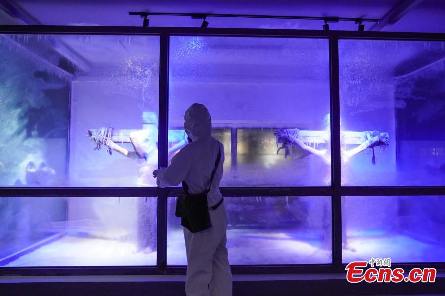 Photo shows a frostbite laboratory at a special exhibition on the filming journey of the movie Evil Unbound in Harbin, northeast Heilongjiang Province, Sept. 17, 2025. (Photo: China News Service/Zhao Yuhang)