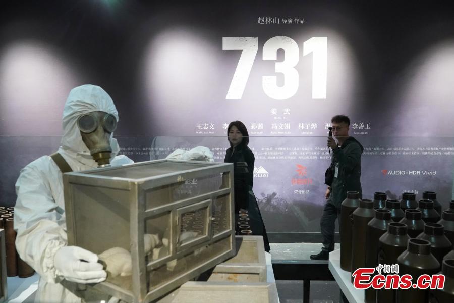 A visitor views exhibits at the special exhibition on the filming journey of the movie Evil Unbound in Harbin, northeast Heilongjiang Province, Sept. 17, 2025. (Photo: China News Service/Zhao Yuhang)