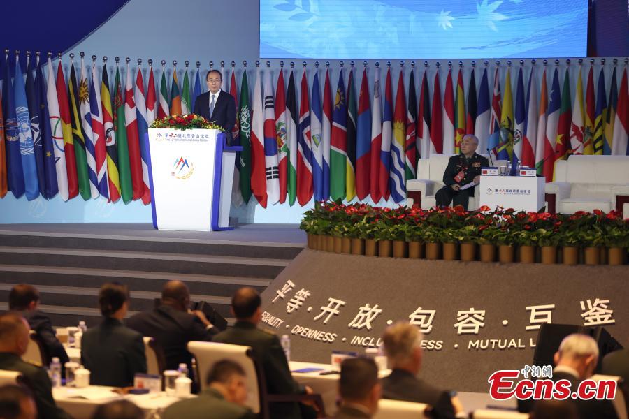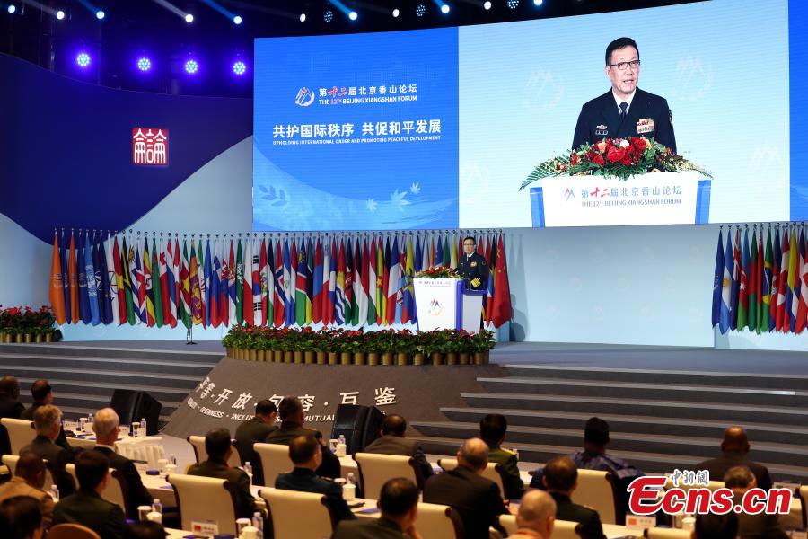 Chinese Defense Minister Dong Jun delivers a keynote speech at the opening of the 12th Beijing Xiangshan Forum in Beijing, Sept. 18, 2025. (Photo:China News Service/ Futian)