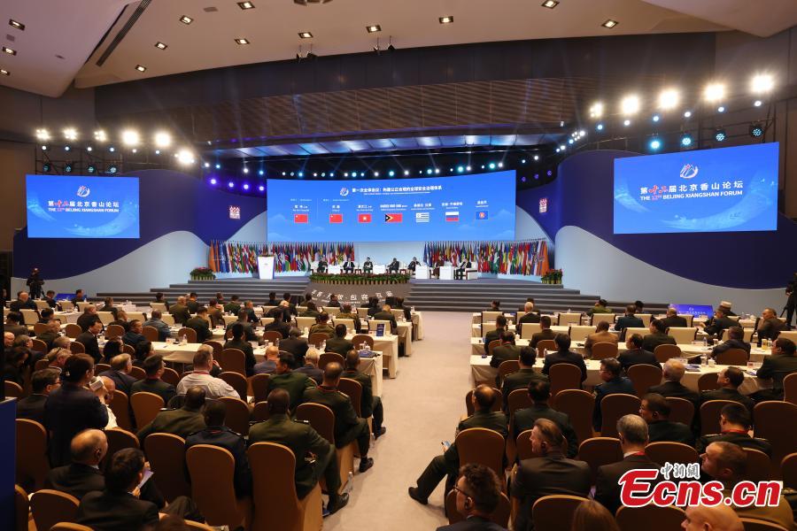 The opening ceremony of the 12th Beijing Xiangshan Forum is held at the China National Convention Center in Beijing, Sept. 18, 2025. Themed Upholding International Order and Promoting Peaceful Development, the forum brought together over 1,800 participants from more than 100 countries, regions, and international organizations. (Photo:China News Service/ Futian)