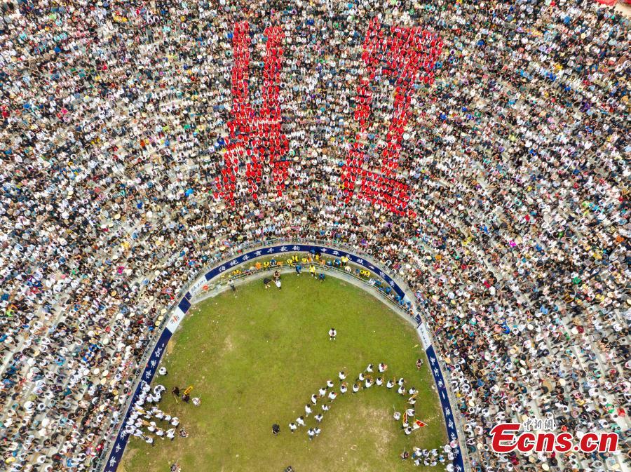 People watch folk cultural performances in Congjiang County, Qiandongnan Miao and Dong Autonomous Prefecture, Guizhou Province, Sept. 20, 2025. (Photo provided to China News Service)
