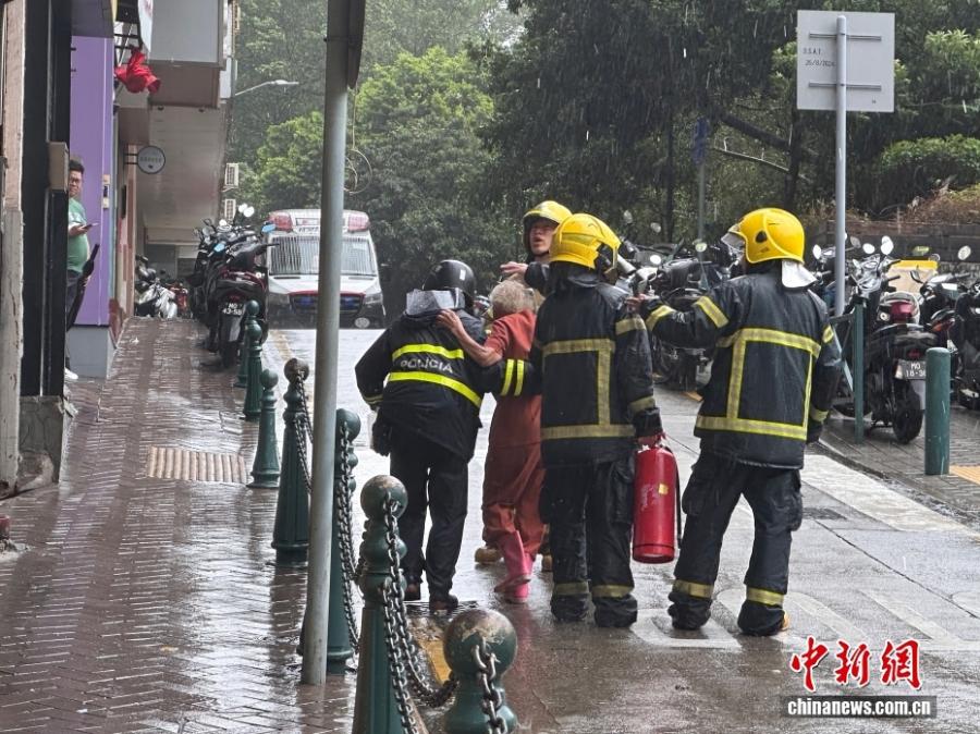 A rescue team transfers an old man as super typhoon Ragasa hits Macao Special Administrative Region, Sept. 24, 2025. (Photo: China News Service/Zheng Jiawei)
