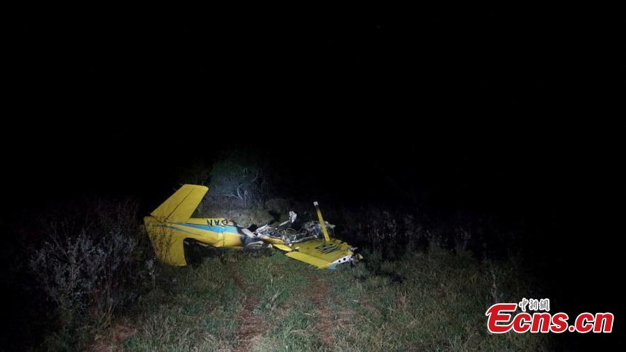 Photo taken on Sept. 23, 2025, local time shows the wreckage of the plane taken by Chinese landscape architect Yu Kongjian in Brazil. (Photo/Agencies)