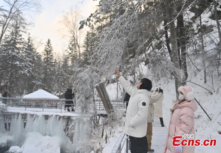 Tourists visit the Changbai Mountain scenic area in Jilin Province, Dec. 3, 2025. (Photo: China News Service/Zhang Yao)
